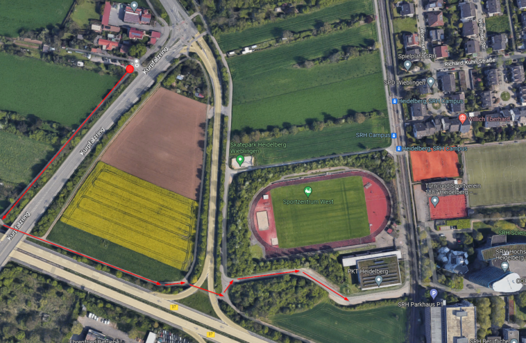 Parkplatz: Hier befindet sich das Sportzentrum West (Sportplatz und Halle)